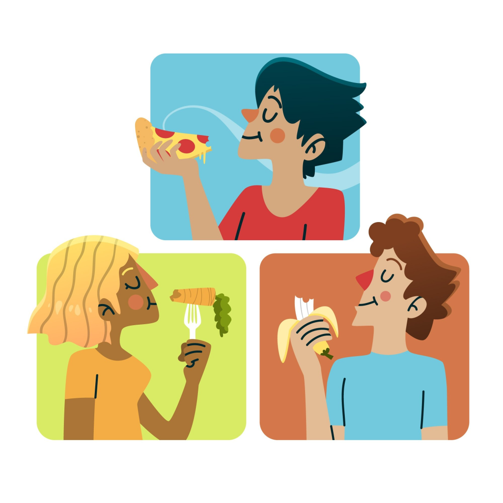 Es una práctica que nos ayuda a relacionarnos con la comida de una forma mas saludable, sin ansiedad y sin estrés, ayuda a poner 100% de la atención, de manera intencionada, en el acto de comer, prestando atención al todo el proceso, desde escoger los alimentos y cocinarlos hasta llevarlos a la boca y disfrutarlos.